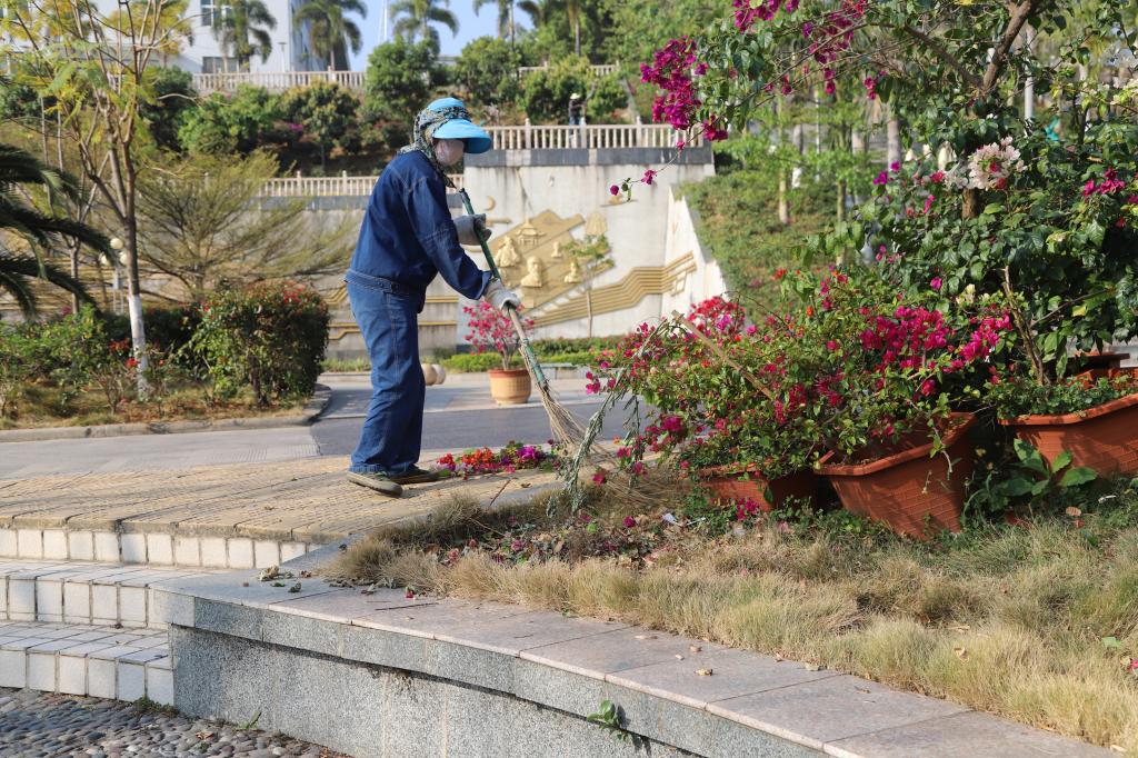 后勤职工清扫校园