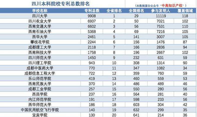 2018年四川省高校专利排名