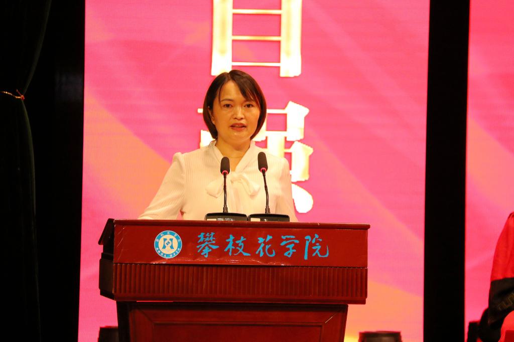 党委副书记、校长李兴贵作题为《“永攀”——向阳而生 向上攀登》毕业致辞。他回顾了毕业生们在校园的奋斗点滴,从清晨图书馆前的长队到深夜伏案钻研的身影,并对顺利完成学业、获得各类荣誉称号、继续读研深造、在创新创业等各类大赛斩获佳绩、携手奋进集体上岸、应征入伍、服务基层、扎根攀枝花的毕业生们表示热烈的祝贺。